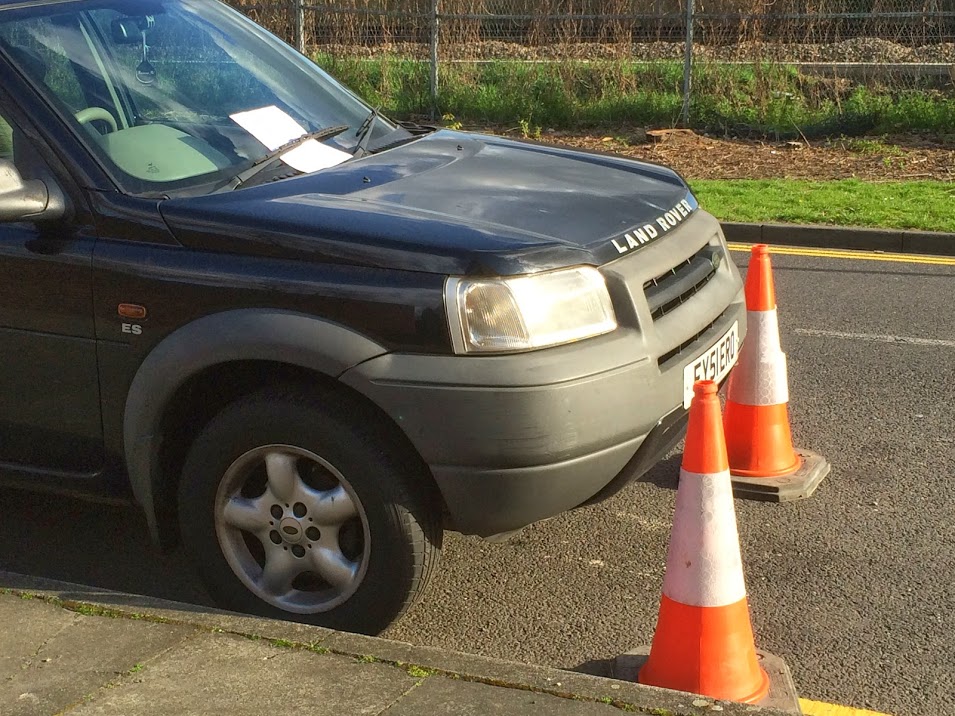 Somebody isn’t happy. They’ve swarmed such cars and surrounded them with orange cones as this picture shows: