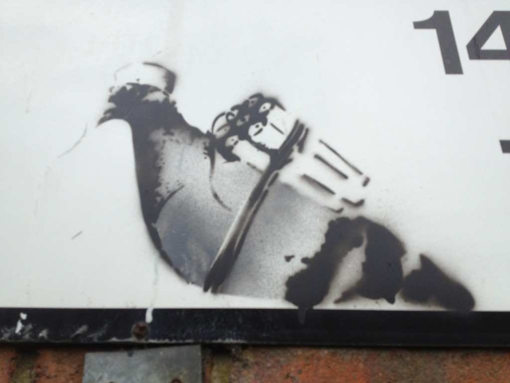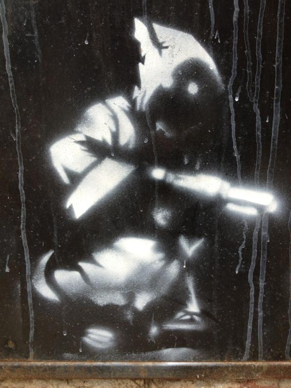After I wrote about graffiti before I came across a Tweeter by the handle @missy_t_k who had caught some extra images of pictures she’d spotted. I found a couple more myself, and I think it’s worth putting them up here because no doubt they’ll be painted over eventually and it’s nice to preseve it in some form that others can see.
