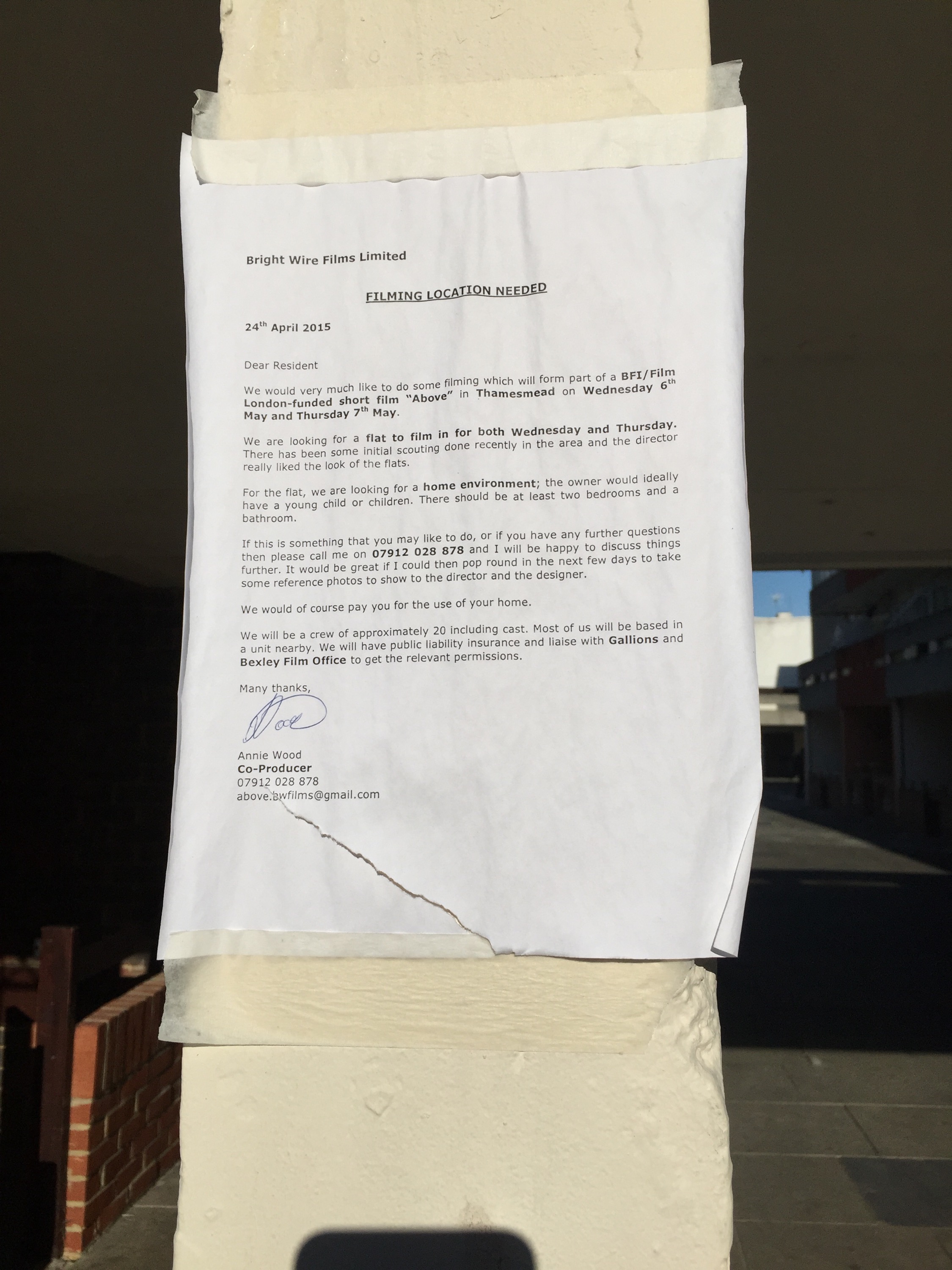 I saw this poster tacked up on my way home – a film maker has been in the area and wants to use a local home interior for a film. Click the image to see the full size picture for full info if it’s not legible here.
